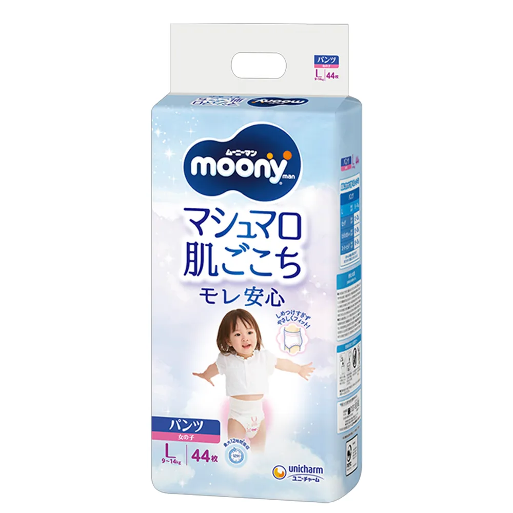 Moony sauskelnės-kelnaitės L (Mergaitėms) 9-14 kg, 44 vnt.