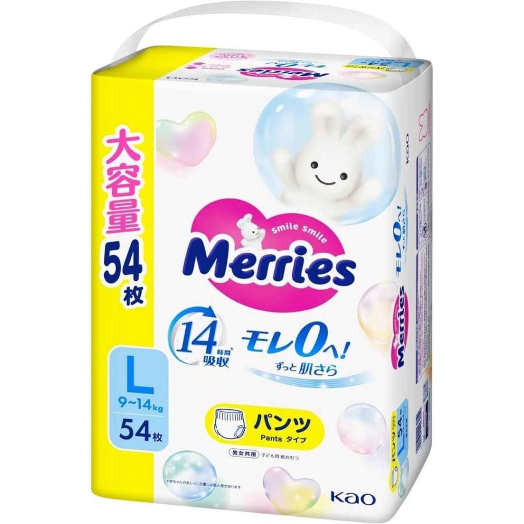 MERRIES Sauskelnės-Kelnaitės L 9-14 kg, 54 vnt.
